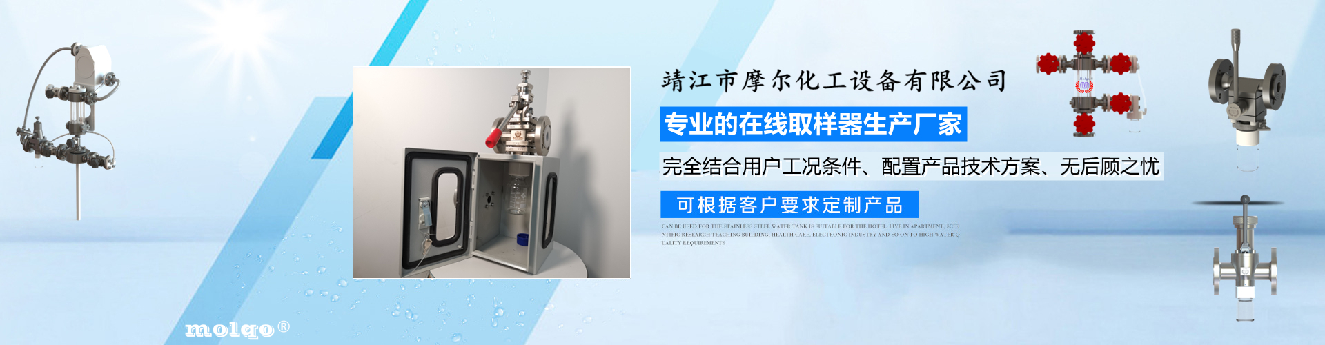 靖江市摩爾化工設(shè)備有限公司位于蘇中明珠——江蘇省靖江市城南工業(yè)園區(qū)東進(jìn)路北側(cè)天元艾爾瑞內(nèi),另有生產(chǎn)基地位于靖江市經(jīng)濟(jì)技術(shù)開(kāi)發(fā)區(qū)新號(hào)路1號(hào)鼎電科技園內(nèi)。我公司由數(shù)名長(zhǎng)期從事化工生產(chǎn)、氟塑襯里模具開(kāi)發(fā)以及機(jī)械自控設(shè)備的專(zhuān)業(yè)人員共同合作成立,致力于提供客戶(hù)最優(yōu)的高效在線(xiàn)取樣、反應(yīng)及精餾分離設(shè)備,為客戶(hù)提供合理的設(shè)備選型方案,以幫助客戶(hù)提高綜合生產(chǎn)效率以及改善生產(chǎn)現(xiàn)場(chǎng)環(huán)境為目標(biāo)。 本公司主要制造及銷(xiāo)售的產(chǎn)品有:釜用在線(xiàn)取樣裝置,管道取樣閥,釜用清洗噴淋裝置、搪玻璃設(shè)備、GMP專(zhuān)用搪玻璃設(shè)備、氟塑襯里設(shè)備、攪拌器、釜用機(jī)械密封、氣動(dòng)閥門(mén)及搪玻璃管道、襯氟閥門(mén)管道、非標(biāo)不銹鋼容器,精餾塔塔器、片式冷凝器及PTFE密封件、鋯、鈦、鉭、鎳等加工件制品。我司是一家集研發(fā)銷(xiāo)售、設(shè)計(jì)咨詢(xún)服務(wù)于一體的專(zhuān)業(yè)···